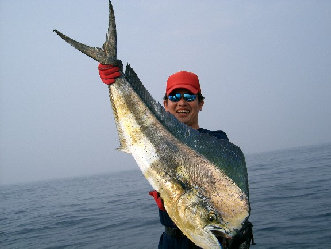 弱い潮目を流して行くと数匹ながらシイラを発見!